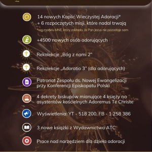 Mamy ponad +4500 nowych Strażników Eucharystii (stałych osób adorujących). To dzięki ich stałej Godzinie Świętej Kaplice Wieczystej Adoracji mogą istnieć, a Pan Jezus w żadnej chwili nie pozostaje sam.